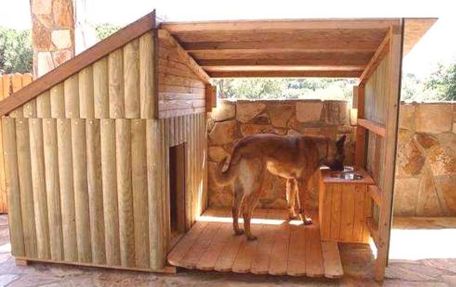 Właściciel mający zdolności manualne może zbudować dla swojego przyjaciela drewniany domek z werandą. Dzięki temu, że podłoga jest sporo nad ziemią nie przemaka i nie ciągnie wilgoci. Do domku można psu włożyć posłanie żeby mógł się schronić przed chłodem a pod zadaszeniem może się również schować przed nagłym deszczem wtedy, kiedy nikt z domowników nie zauważył że zaczęło padać, a pies jest na dworze.