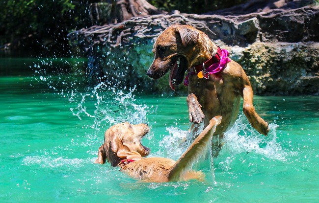 W upalne dni dla psa bardzo groźny jest asfalt, który rozgrzewa się tak, że parzy opuszki łap. Właściciel najczęściej nie zdaje sobie z tego sprawy, bo od asfaltu izolują go buty. Warto więc sprawdzić, czy nie ma ryzyka poparzenia dotykając wierzchem dłoni nawierzchni jezdni. Oparzenia łap są wyjątkowo bolesne i bardzo długo się goją. Idąc z psem ulicą miejmy to na uwadze i wybierajmy raczej trawiaste lub w ostateczności piaszczyste pobocze zamiast betonowych lub asfaltowych nawierzchni. Szukajmy cienia i unikajmy otwartych nasłonecznionych ulic. Możemy mu ulżyć spryskując go przed wyjściem z domu zimną wodą z rozpylacza we wszystkich tych miejscach, które są w bardzo niewielkim stopniu owłosione: na brzuchu, wewnętrznych stronach ud oraz oczywiście na opuszkach łap. Poprawia to komfort, ale nie na długo. Bardziej skuteczna i dająca psu większy komfort jest specjalna kamizelka chłodząca, bo obniża temperaturę ciała. Trudno się dziwić, że w takich warunkach pies nie przejawia ochoty do ćwiczeń, prawde mówiąc jest tylko jedno miejsce, które jest w stanie wprawić go w euforię – to jest basem w przydomowym ogrodzie (ale kto go ma ?) lub jezioro, do którego jakoś trzeba dojechać. Przy okazji przestrzegam przed pozostawieniem psa w samochodzie, gdzie temperatura wzrasta niejednokrotnie do kilkudziesięciu stopni, co stanowi dla niego śmiertelne niebezpieczeństwo. Niestety każdego roku, mimo, że stale się o tym mówi, wiele psów umiera z powodu udaru.