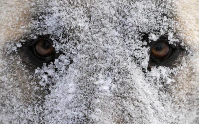 Zamarzający mokry śnieg na sierści