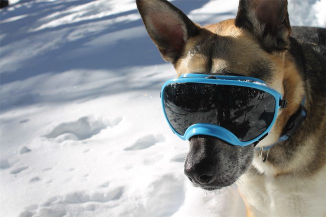 Miejski śnieg nigdy nie odbija światła na tyle mocno, by pies mógł odczuwać jakikolwiek dyskomfort z tego powodu. Jeśli jednak mamy zamiar spędzić wakacje w górach, warto pamiętać o silnych, oślepiających promieniach słońca odbijających się od śnieżnobiałego śniegu. Chodzi tu przede wszystkim o oczy, ale również bardzo wrażliwe, słabo owłosione małżowiny uszne, powieki oraz grzbiet nosa i truflę nosową u psów o białej sierści. Przy dużym nasłonecznieniu może dojść nawet do problemów okulistycznych, zwłaszcza u psów cierpiących na różne choroby oczu. W tym przypadku przed wyjazdem wskazana jest wizyta u lekarza weterynarii, który zdecyduje, czy trzeba przedsięwziąć jakieś środki ochronne. Są już specjalne gogle dla psów, które nasze czworonogi bez problemu akceptują. Co się tyczy niebezpieczeństwa poparzenia skóry, jeśli jest zdrowa, wystarczy ją zabezpieczyć odpowiednią maścią lub preparatem zawierającym silny filtr UV. Choroby skóry, takie jak np. hot spot, nowotwór skóry lub fotodermatoza, wykluczają nadmierną ekspozycję słoneczną, bo może dość do ich zaostrzenia. Szczególnie wrażliwe na działanie słońca są psy o białym umaszczeniu i z brakiem pigmentu.