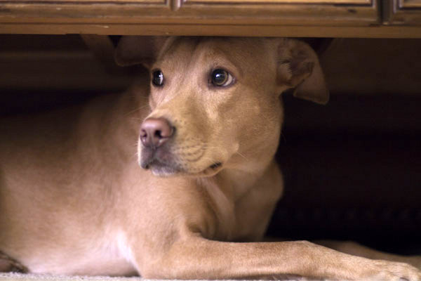 • Jeśli pies chowa się po kątach lub pod łóżkiem, nie próbujmy go stamtąd wyciągnąć na siłę, najprawdopodobniej czegoś się boi i z bezpiecznej perspektywy chce ocenić sytuację. Zajmijmy się czymkolwiek i nie zwracajmy na niego uwagi, po chwili sam wyjdzie a interesujący zapach dochodzący z kuchni na pewno go do tego zachęci. Psy są z natury ciekawe, jak tylko zobaczy, że nic mu nie grozi sam opuści swoją kryjówkę i dołączy do opiekunów. Pochwała i smakołyk utwierdzą go w przekonaniu, że podjął mądrą decyzję.