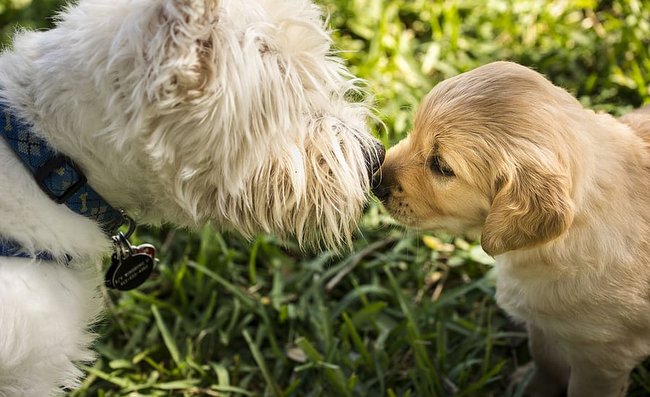 Wiadomo, że żaden zrównoważony dorosły pies nie rzuci się na szczeniaka, trzeba wykorzystać ten okres ochronny, żeby nauczyć go bezkonfliktowego przebywania w towarzystwie psów, wtedy zanim dorośnie, zdąży się z nimi zaprzyjaźnić. Jeśli kiedyś spotka niezbyt przyjaźnie nastawionego psa, nie będzie się go bał, taka postawa w oczach innego psa zawsze budzi respekt, jest więc mniejsze niebezpieczeństwo, że może zostać zaatakowany. Socjalizacja z innymi psami ma nie tylko na celu zaprzyjaźnienie się naszego czworonoga z pobratymcami, ale przede wszystkim naukę ich ignorowania i umiejętność skupiania się na właścicielu w obecności innych psów. W tym czasie poznaje też “mowę ciała” i uczy się informować inne psy o swoich zamiarach i odpowiednio reagować, by nie doszło do konfliktów.