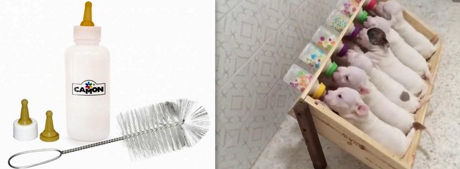 Zestaw do karmienia szczeniąt mlekiem zastępczym i pomysł na ułatwienie sobie pracy przy kilku szczeniakach