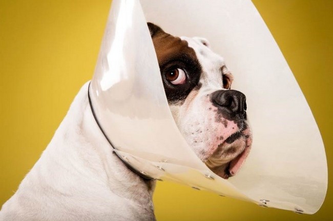 Przez wiele lat próbowano sobie z tym problemem radzić nakładając na szyję psa ogromne, niewygodne koło wycięte z twardego plastiku, zwane kołnierzem weterynaryjnym. Podobno wymyślono je dla dobra psa, żeby nie zrobił sobie krzywdy. W rzeczywistości obolałe i zmęczone chorobą zwierzę musi się mierzyć z dodatkowym stresem, nie może w tym kloszu pić i jeść, trudno mu leżeć, chodząc traci wyczucie dystansu do różnych przedmiotów i obija się o ściany i meble, a siła tego uderzenia skupia się na delikatnej i bardzo wrażliwiej szyi. Opiekunowie psów są świadomi jej niedoskonałości, o czym świadczy fakt, że to nieszczęsne narzędzie tortur od pewnego czasu znika z oferty gabinetów weterynaryjnych.