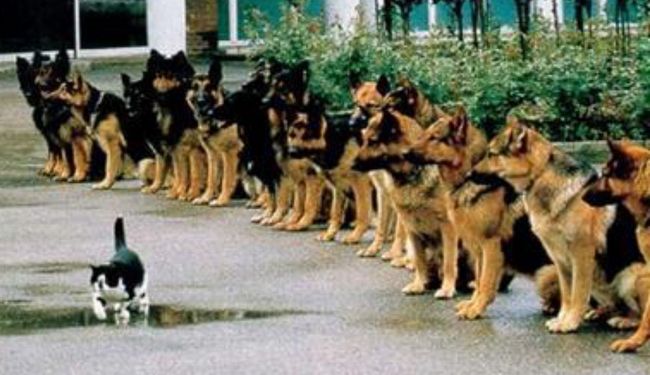 Aż strach pomyśleć, co by się mogło stać z kotkiem, gdyby te wspaniałe owczarki do perfekcji nie opanowały komendy “zostań”.