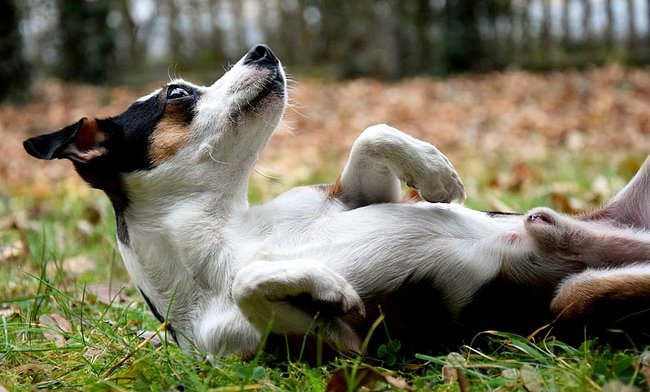 W razie konfliktu, ani wilki, ani psy nie maja zwyczaju wywracania przeciwnika na grzbiet. To pies, który nie czuje się pewnie i jest przestraszony z własnej inicjatywy, sam przyjmuje taką, zwaną nawet poddańczą, pozycję, która oznacza brak złych intencji i propozycję zgody. Natomiast w gronie przyjaciół wywrócenie się na brzuch oznacza zaproszenie do zabawy.