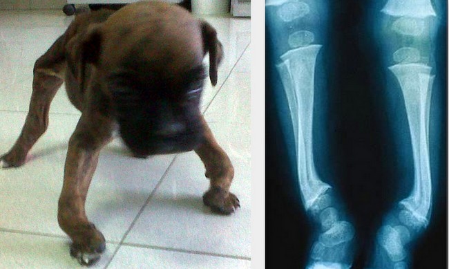 Objawem, który nie pozostawia wątpliwości, że mamy do czynienia z krzywicą jest łukowate wygicie kości kończyn co powoduje, że pies podczas chodzenia opiera się nie na łapach, ale na nadgarstkach. Jego grzbiet staje się łękowaty, brzuch jest nienormalnie powiększony, a rozwój szczenięcia zostaje wyraźnie przyhamowany. Jeśli nie dostanie natychmiastowej pomocy weterynaryjnej istnieje bardzo duże niebezpieczeństwo, że nie przeżyje.