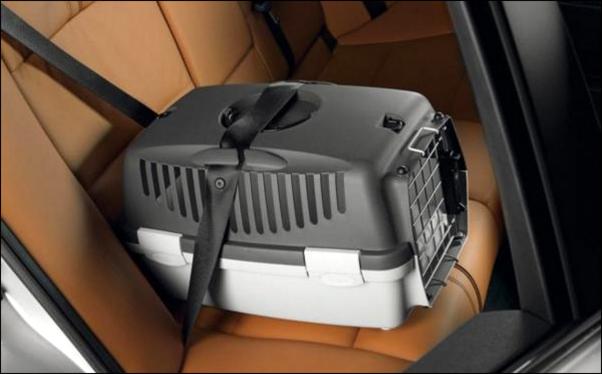 Mały transporter powinien mieć możliwość przypięcia samochodowym pasem bezpieczeństwa. Trzeba jednak zdawać sobie sprawę z tego, że wprawdzie tego rodzaju pas zapobiega przesuwaniu się transportera podczas normalnej jazdy, ale na skutek ostrego hamowania dociska transporter z taką siłą, że pod jego naciskiem plastik po prostu się łamie. Duży powinien być takiej wielkości, żeby można go było zablokować między oparciem tylnego siedzenia i tyłem fotela kierowcy lub siedzącego obok niego pasażera. W tym przypadku lepiej sprawdzi się dobrej jakości klatka, na tyle mocna, żeby nie uległa zgnieceniu podczas wypadku.