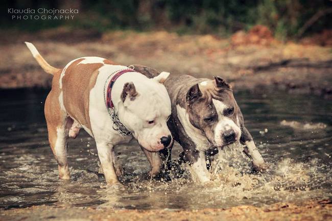 Nie bez winy są również schroniska, które lekkomyślnie przekazują psy tej rasy w ręce ludzi, którzy nie mają o nich pojęcia. Znowu moje własne doświadczenie: sklep zoologiczny, razem z moimi psami czekam w kolejce, przede mną pan z amstaffem bez kagańca. Prosi o kaganiec, najmocniejszy jaki jest. Cały roztrzęsiony opowiada, że ma tego psa dopiero od trzech dni, ze schroniska. Rozerwał już dwa kagańce i zagryzł dwa psy. Zapewne jest to pies po przejściach, ale kto w schronisku zdecydował, by go przekazać człowiekowi, który nigdy psa nie miał i zupełnie z nim sobie nie radzi ?! Miałam ochotę go o to zapytać, ale kiedy spojrzałam na moje psy i uświadomiłam sobie, że któryś z nich mógł być trzeci, czym prędzej wyszłam ze sklepu. Jedno jest pewne, że jeśli coś tu zawiodło, to przede wszystkim ludzie.