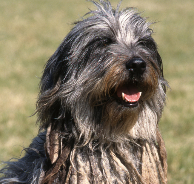 Sierść: Nadzwyczaj obfita, bardzo długa, ukształtowana różnie na poszczególnych partiach ciała. Włos szorstki, kozi, zwłaszcza na przedniej części ciała. Od połowy klatki piersiowej na całej tylnej części tułowia, i na wszystkich kończynach, sierść – w zależności od wieku – albo tworzy, albo już utworzyła opadające wstęgi. Włos na głowie nie jest tak szorstki, przykrywa oczy. Na kończynach włos tworzy równo rozmieszczone kosmyki, opadające ku dołowi,