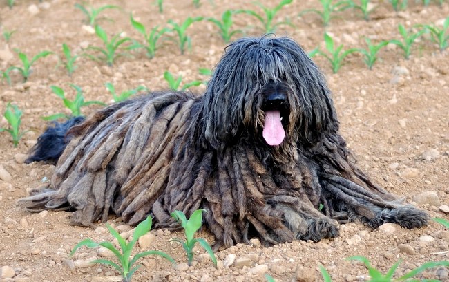 tak, że przód psa wygląda jak jedna masa włosa. Na zadzie i kończynach tylnych gęste wstęgi pokrywają całą powierzchnię. Podszerstek krótki i gęsty, tak, że skóra jest niewidoczna, i tłusty w dotyku.