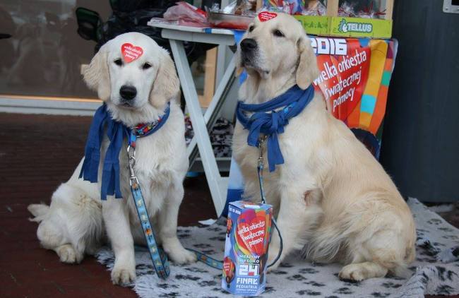 Trudno pomylić je z innymi wolontariuszami, ale na wszelki wypadek przystrojono je w czerwone szaliki. Zawsze kiedy gra Wielka Orkiestra Świątecznej Pomocy w kilkunastu największych miastach kwestującym towarzyszą golden retrievery. To już stało się tradycją, widocznie potrafią otwierać ludzkie serca, skoro każdego roku udaje się im zebrać niemałe sumy. Ich udział jest zawsze doskonale zorganizowany, wielkie brawa dla pięknych i mądrych goldenów oraz ich opiekunów!