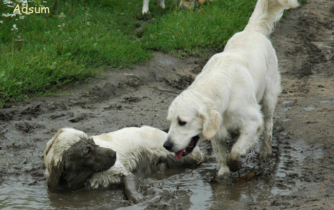 Golden retriever jest psem myśliwskim, uwielbia wodę, doskonale aportuje dzikie ptactwo. Nie pogardzi żadną kałużą, czego dowodem jest powyższe zdjęcie. Jego właściciel powinien zachować nadzwyczajną czujność i na widok błotnistego bajora natychmiast przywoływać go do nogi, bo wystarczy moment nieuwagi, by szczęśliwy i uśmiechnięty od ucha do ucha pies już w nim siedział. Dzięki swojemu charakterowi, golden stał się przede wszystkim psem rodzinnym. Jest zrównoważony, łatwo się uczy, nie trzeba mieć dużego doświadczenia, żeby doskonale poradzić sobie z jego wychowaniem i wyszkoleniem. Potrzebuje jednak stanowczego i konsekwentnego przewodnika, ponieważ do późnego wieku pozostaje dużym, uroczym szczeniakiem, zawsze wesołym i skłonnym do zabawy. Mimo to, jesli sytuacja tego wymaga, potrafi zachować się spokojnie i nie sprawić kłopotu.