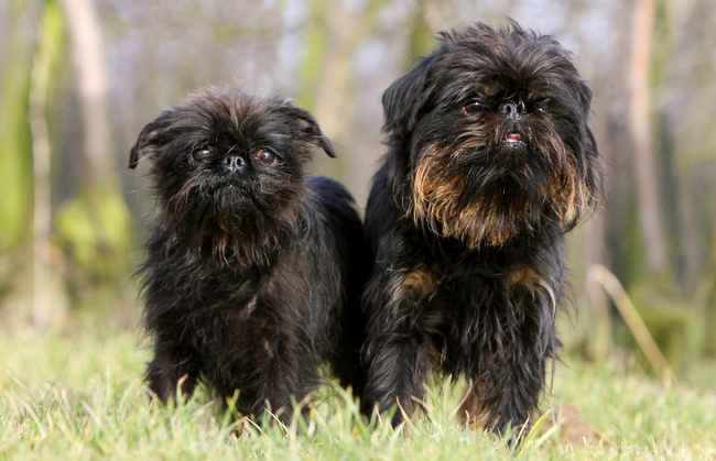 W jednym miocie mogą urodzić się wszystkie odmiany gryfonika: szorstkowłosy belgijski i brukselski a także gładkowłosy brabantczyk.