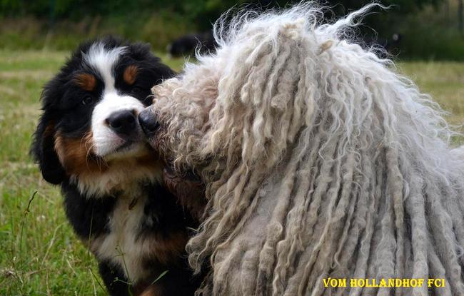 Ch.PL,LT YAGA Zwierz w Dredach , mała AJRA Słoneczny Dar-Ham , Ch. PL , Mł. Ch. PL XARA Zwierz w Dredach i berneńczyk KANORO DENZEL vom Hollandhof  wł. hod. Vom Hollandhof