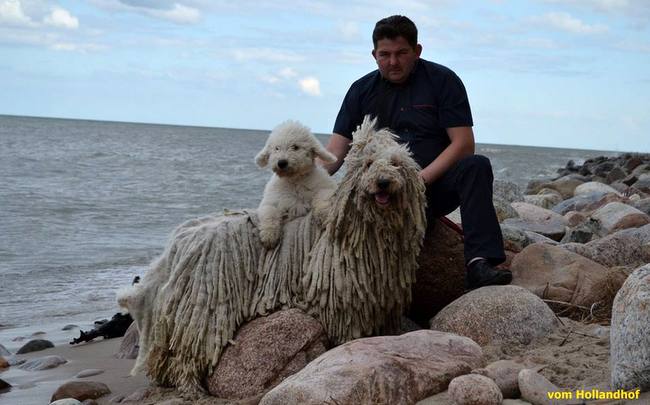 Do połowy lat 60-tych ubiegłego wieku wzorzec rasy dopuszczał dwa rodzaje owłosienia: sznurowe oraz płatowe. Ponieważ płaskie kawałki sfilcowanej sierści odrywały się bardzo często pod własnym ciężarem, postanowiono, że akceptowana będzie tylko sierść sznurowa, do czego dodano wymóg, by wszystkie sznurki były równej grubości. Sierść nie może być ani wyczesana, ani kompletnie zaniedbana.