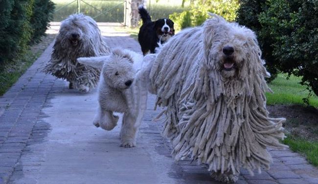 Wiele lat temu wybraliśmy się z naszą miniaturową sznaucerką na międzynarodową wystawę psów do Budapesztu naiwnie wierząc, że znalezienie noclegu w tak dużym mieście nie powinno stanowić problemu. Szybko przekonaliśmy się, że grozi nam spanie w samochodzie. Trafili się na szczęście przemili Węgrzy, mówiący na dodatek biegle po francusku, którzy zaprosili nas do siebie i właśnie w ich domu po raz pierwszy zobaczyliśmy komondory. Psy powitały nas w ogrodzie, a kiedy właściciele otworzyli drzwi do pięknego, okazałego domu, a raczej rezydencji, wmaszerowały pierwsze i rozłożyły się na pięknej, mozaikowej podłodze. My za nimi, na bosaka, wzorem gospodarzy zostawiwszy buty na ganku. Po zachowaniu psów było widać, że ich obecność w domu nie była na pokaz, takie po prostu w tej rodzinie były zwyczaje. W domu panował idealny porządek, ani śladu wniesionych przez psy śmieci, może żyjące w mieście komondory już nie bałaganią, tylko pełnią funkcję mopów?