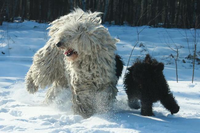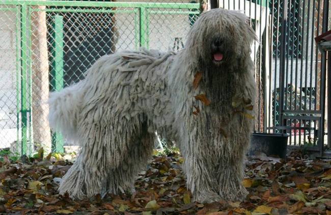 Sierść: Całe ciało porośnięte długą sierścią, na którą składają się bardziej szorstki włos okrywowy i delikatniejszy podszerstek. Ostateczny jej kształt zależy od proporcji tych dwóch rodzajów włosa. Sierść musi być koniecznie kosmata i spilśniona w płaty, albo w naturalny sposób tworzyć jednakowej długości zbite sznury. Niewielkie kępki krótszego włosa pilśnią się słabiej lub wcale. Sierść jest najdłuższa na zadzie, udach i lędźwiach, gdzie jej długość wynosi co najmniej 20-27 cm. Na grzbiecie, bokach klatki piersiowej i łopatkach średniej długości (15-22 cm), krótsza na policzkach, czole, wierzchołku głowy, uszach, szyi i kończynach (10-18 cm), najkrótsza na pysku i łapach (9-11 cm). Sierść nie może być wyczesana ani kompletnie zaniedbana.