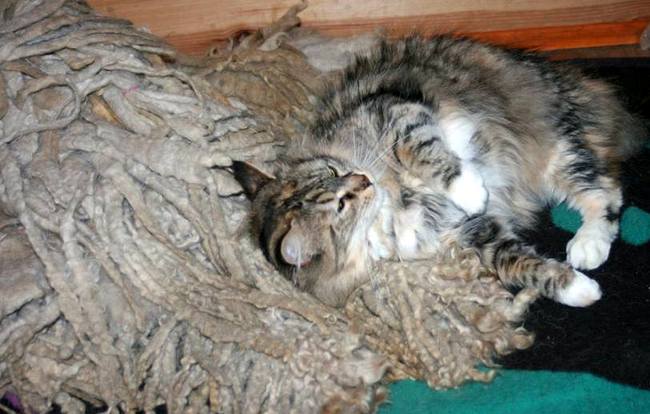 Jaszkiseri Kocos AKAC w charakterze posłania dla kotki Maxi Wł.hod. Zwierz w Dredach