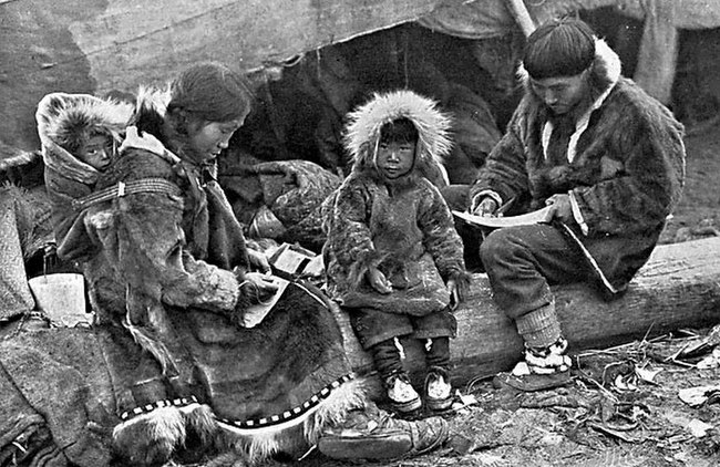 Kiedy ich właściciele zadomowili się tu na dobre i przekształcili w dzisiejszych Inuitów, bez problemu przystosowali się do niełatwego życia w surowym, arktycznym klimacie. W lecie żyli w wykonanych ze skór namiotach, natomiast na okres zimowy przenosili się do igloo. Głównym źródłem ich pożywienia oraz surowców na odzież, namioty i łodzie, były karibu, foki, morsy, niedźwiedzie, ryby a nawet wieloryby. W poszukiwaniu jedzenia przenosili się z miejsca na miejsce, nic więc dziwnego, że towarzyszyły im psy, które wykorzystywali do ciągnięcia ładunków oraz polowania na białe niedźwiedzie i foki. Ich zadaniem było osaczenie niedźwiedzia i znalezienie w lodowej tafli niewielkiego otworu, przez który foki wychylały się z wody dla zaczerpnięcia powietrza. Resztę robili myśliwi.