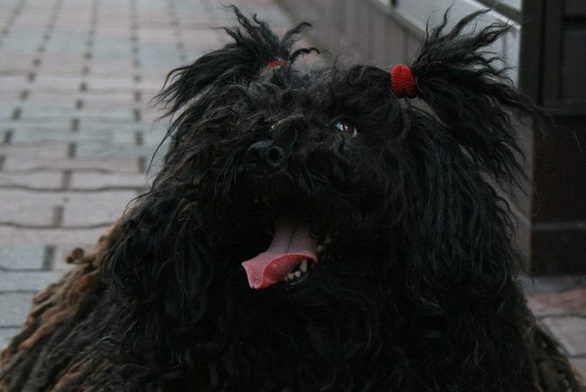 Sierść: włos szczenięcy jest gęsty, falisty lub kędzierzawy. Z czasem kępki włosa tworzą płaty i sznury. Sierść składa się z bardziej szorstkiego włosa okrywowego i delikatnego podszerstka; stosunek tych dwóch rodzajów włosa decyduje o rodzaju sierści. Jeśli włos okrywowy wyraźnie przeważa nad podszerstkiem, sierść jest luźna i odstająca. Gdy znacznie przeważa podszerstek, sierść pilśni się, ale jest zbyt miękka i trudna w pielęgnacji, co jest niepożądane. Gdy proporcja obu rodzajów włosa jest odpowiednia, co uwarunkowane jest genetycznie, sierść tworzy estetyczne wstęgi i sznury, łatwe w pielęgnacji. Najdłuższe są sznury ma lędźwiach, zadzie i udach – sięgają 20-30 cm. Najkrótsze, na głowie i kończynach, mierzą 10-12 cm. Prawidłowa sierść na głowie to taka, która tworzy gęste sznury, pokrywające całą część twarzową. Niepożądany jest zarówno włos wyczesany, jak i zupełnie zaniedbany.