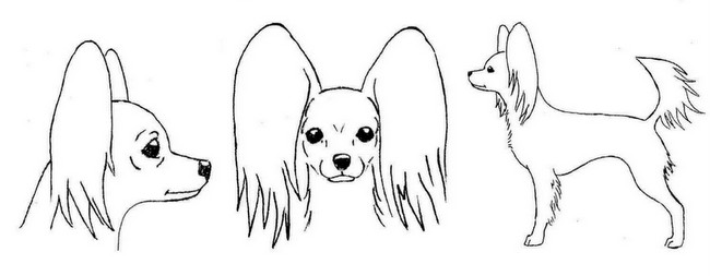 – u psów długowłosych: brak piór na uszach, kędzierzawa szata
