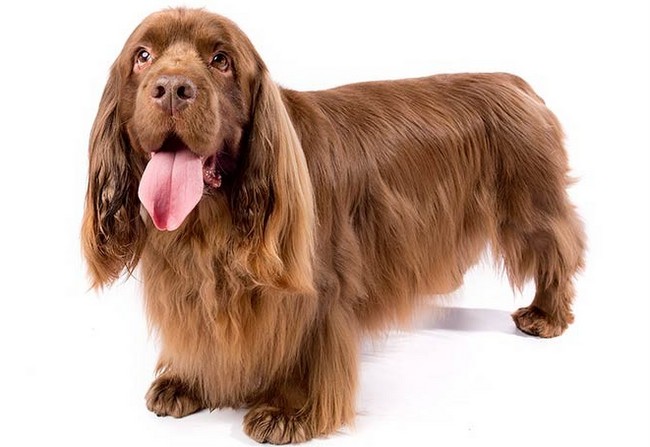 Sussex spaniel ma obfitą, płasko leżącą, średniej długości sierść, o gęstym, wodoodpornym podszerstku. Umaszczenie jednolite, o złoto wątrobianej barwie z charakterystycznym złotawym zabarwieniem końcówek włosów, nadającym szacie złocisty połysk.