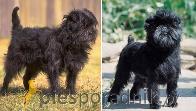 Przygotowanie affenpinschera do wystawy jest nieco inne niż większości ras. Martwy włos oczywiście musi być usunięty. Co do reszty, nie wolno przedobrzyć, bo pies musi zachować naturalny, trochę rozczochrany wygląd i jego sierść nie może być za bardzo „dopieszczona” i wystylizowana. Przy pomocy degażówek trzeba bardzo delikatnie wyrównać i skrócić włos na przedpiersiu i na siedzeniu. Ten zabieg ma na celu optyczne skrócenie psa, którego sylwetka zgodnie ze wzorcem powinna być krótka i zwarta. Również degażówkami skracamy sierść wokół odbytu oraz wyrównujemy włos na ogonie, żeby mu nadać kształt marchewki. Minimalnie wyrównujemy włos na kończynach. Na zdjęciach bardzo wyraźnie widać różnicę: przed retuszem i po retuszu.