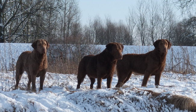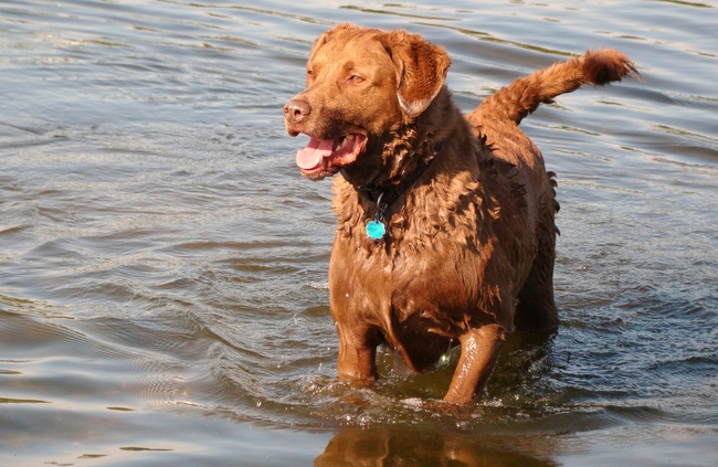 W zasadzie chesapeake nie powinno się kąpać, bo tradycyjna kąpiel usuwa tłuszcz który sprawia, że jego sierść jest wodoodporna. Dużo się jednak w ostatnich latach zmieniło i coraz więcej psów, które kiedyś były wykorzystywane głównie jako psy pracujące, dziś pełni rolę psów rodzinnych i mieszka w naszych domach a jedyny zbiornik wodny jaki mają do dyspozycji to wanna i plastikowy dziecięcy basenik w ogrodzie. Trudno w tych warunkach zrezygnować z kąpieli, choćby ze względów higienicznych.