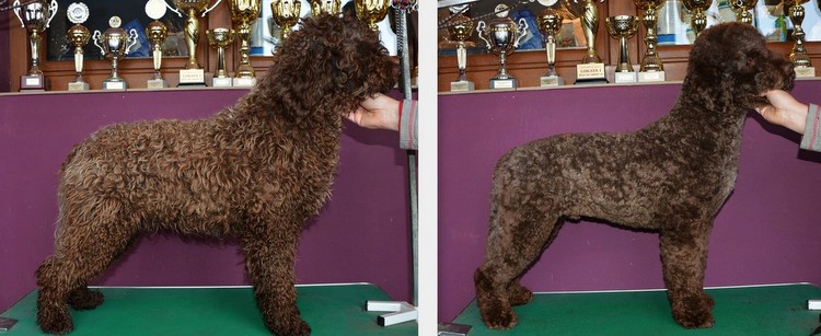 Zgodnie ze wzorcem sylwetka lagotto romagnolo powinna być zbliżona do kwadratu. Naszym zadaniem jest wobec tego przy pomocy odpowiedniego strzyżenia jak najbardziej psa do tego ideału przybliżyć. W tym celu skracamy sierść maszynką na przedpiersiu i na pośladkach do około jednego centymetra.