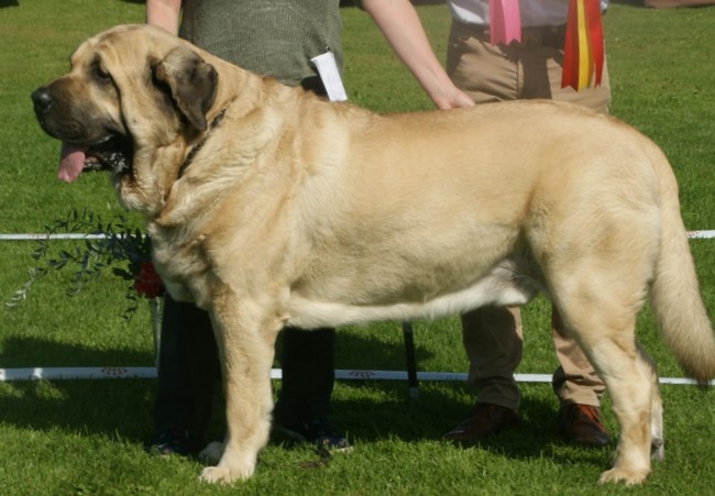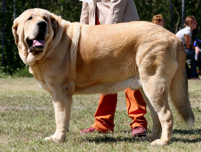 Mastiff hiszpański ma bardzo grubą, średniej długości sierść podszytą wełnistym podszerstkiem, która pokrywa niemal całe ciało z wyjątkiem kończyn, na których jest odpowiednio krótsza oraz ogona, gdzie włos jest znacznie dłuższy i jedwabisty. Włos na przedpiersiu i słabiźnie ma inną strukturę niż na reszcie ciała.
