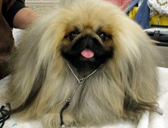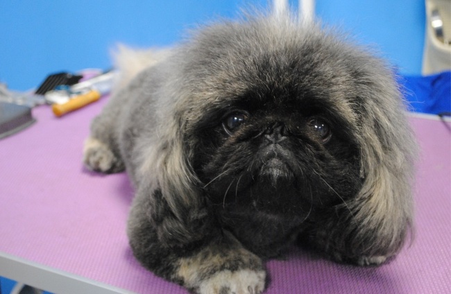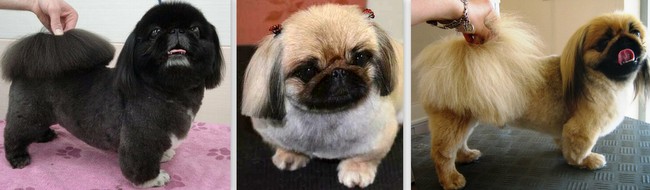 Sierść pekińczyka powinna pozostać naturalnej długości i nigdy nie może być strzyżona. Użycie nożyczek degażujących uzasadnione jest jedynie do niewielkiej korekty owłosienia przed wystawą. Przygotowanie zaczynamy od rozplątania ewentualnych supłów i bardzo dokładnego rozczesania sierści. Następnie przy pomocy degażówek wyrównujemy końce długich frędzli zdobiących przedpiersie, dół klatki piersiowej, podbrzusze, uda i tylną stronę kończyn.