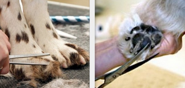 Pazury, jeśli pies nie ściera ich sobie w sposób naturalny, powinny być obcięte tak, żeby nie dotykały podłogi. Najlepiej zrobić to kilka dni przed wystawą, bo gdyby się zdarzyło przyciąć któryś z nich zbyt krótko, zdąży się wygoić. Włos między opuszkami palców musi być wycięty, czasem w tym miejscu tworzy się zbity filc, który uwiera przy chodzeniu i powoduje odleżynę. Trzeba go ostrożnie wyciąć a skórę posmarować maścią leczniczą, żeby się wygoiła. Jest to bardzo ważne, bo pies może kuleć i nie będzie w stanie odpowiednio zaprezentować się w ruchu. Jeśli wystawa odbywa się w hali, na gładkiej betonowej posadzce pies może się ślizgać i mieć trudności z utrzymaniem równowagi. Istnieje specjalny balsam, który tworzy na opuszce warstewkę przeciwpoślizgową, zwiększa przyczepność i pozwala zlikwidować ten problem.