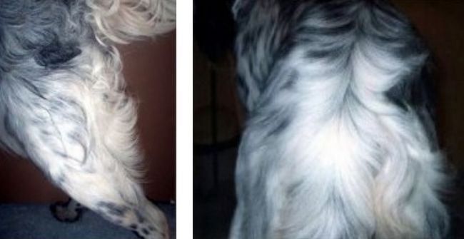 Sierść na wierzchniej stronie ogona powinna być gładka, przylegająca, wobec tego wszystkie niesforne włoski depilujemy. Jeśli u nasady ogona jest kępka odstającego włosa trzeba ją wytrymować bardzo uważając, żeby w tym miejscu ogon łączył się idealnie z linią grzbietu, stanowiąc jej przedłużenie.