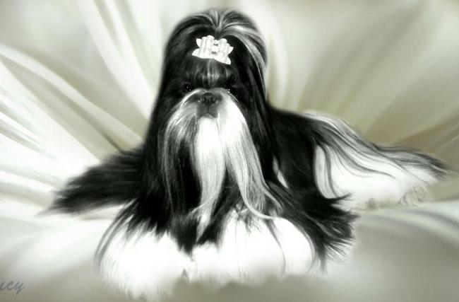 I jeszcze jedno: włos shih tzu powinien być idealnie prosty i wiele psów taki własnie, genetycznie zakodowany włos posiada. Czasem jednak włos jest falisty, co jest wprawdzie dopuszczalne, ale niepożądane. Tu z pomocą przychodzi prostownica, która idealnie wyprostuje falisty włos. Użyta do poprawnego, prostego włosa naciagnie go i nada mu połysk, co sprawi, że szata psa będzie wygladała olśniewajaco.