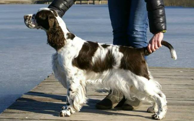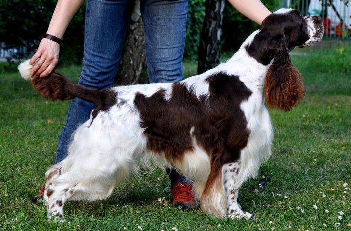 Ogon u springera powinien stanowić przedłużenie linii grzbietu. Na wystawie najczęściej wystawcy trzymają psu ogon, jeśli pies jest czymś podekscytowany przeważnie nie ma takiej potrzeby. Radosny pies biegając po ringu macha ogonem w poziomie, jest to fantastyczny widok, który pokazuje, że pies jest pewny siebie, rozluźniony, biega wtedy bardziej dynamicznie i lepiej się wystawia. Dowartościowanie psa i wprawienie go w dobry humor przed wejściem na ring to połowa sukcesu. Szkoda, że wielu wystawców o tym zapomina.
