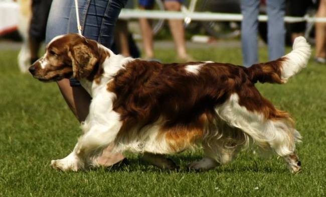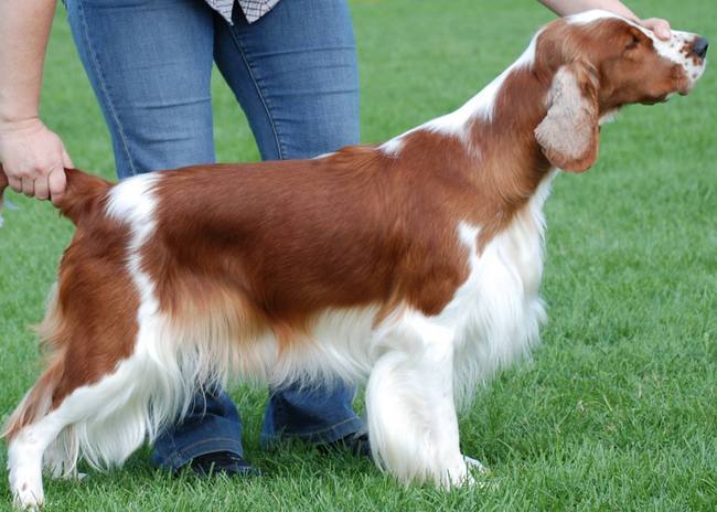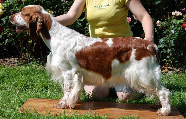 Springer spaniel ma być psem eleganckim, o zwartej budowie, silnym, ale nie ciężkim. To na co trzeba zwrócić szczególną uwag, to harmonijne, praktycznie niewidoczne przejścia między poszczególnymi partiami owłosienia. Górna część tułowia musi być depilowana, ale nie może odcinać się od dołu, tak jak siodło u charta afgańskiego. Piękne frędzle na dole tułowia powinny sprawiać wrażenie jakby brały początek na grzbiecie i potem spływały wzdłuż ciała, nie powinny odstawać, ani być poskręcane. Szczotkujemy je bardzo starannie i jeśli trzeba, delikatnie przerzedzamy ustawionymi w górę a nie poziomo nożyczkami degażującymi. Dół frędzli lekko wyrównujemy tak, żeby pies zachował naturalny wygląd. Jeśli dół frędzli jest podniszczony lepiej je skrócić do miejsca w którym wygląda ładnie i zdrowo, niż pokazywać, że sierść została zaniedbana. I jeszcze jedno: jeśli pies jest za wysoki, starajmy się zostawić jak najdłuższe frędzle na dole tułowia, jeśli za niski, frędzle skracamy. Wygląd psa zdecydowanie na tym zyska.