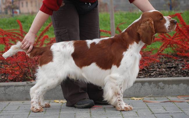 Ogon u springera powinien stanowić przedłużenie linii grzbietu. Na wystawie najczęściej wystawcy trzymają psu ogon, jeśli pies jest czymś podekscytowany przeważnie nie ma takiej potrzeby. Radosny pies biegając po ringu macha ogonem w poziomie, jest to fantastyczny widok, który pokazuje, że pies jest pewny siebie, rozluźniony, biega wtedy bardziej dynamicznie i lepiej się wystawia. Dowartościowanie psa i wprawienie go w dobry humor przed wejściem na ring to połowa sukcesu. Szkoda, że wielu wystawców o tym zapomina.