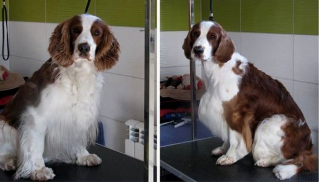 Sierść springer spaniela wymaga regularnej pielęgnacji, nawet wtedy, kiedy pies nie jest wystawiany. Bez tego będzie zszarzała, odstająca i pozbawiona połysku. Jeśli pies ma wyglądać estetycznie, począwszy od 6 – 9 miesiąca życia raz na trzy miesiące powinna być wytrymowana i w niektórych miejscach skrócona. Można znaleźć dobrego fryzjera lub spróbować zadbać o owłosienie we własnym zakresie. Jako wzór może posłużyć opis przygotowania psa na wystawę, który w przypadku psa pełniącego rolę przyjaciela rodziny nie musi być traktowany zbyt dosłownie. Chodzi przede wszystkim o to żeby usunąć martwy włos, bo jeśli się go zostawi, zbije się w filce i może doprowadzić do powstania podrażnień i stanów zapalnych skóry. Sierść springer spaniela rośnie szybko, ryzyko jest nieduże, może więc warto spróbować ?