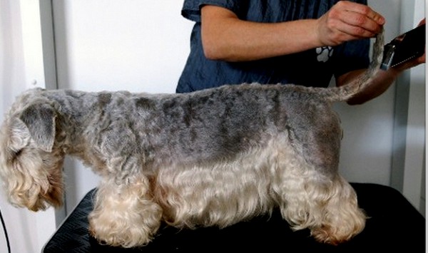 Ogon strzyżemy pod włos ostrzem 3 mm, ale nie cały, tylko z boków i pod spodem. Z wierzchu ogona strzyżemy tym samym ostrzem, również pod włos na długości 2/3 jego długości, począwszy od czubka ogona. Pozostałą 1/3 długości ogona strzyżemy z włosem tak, żeby stanowił przedłużenie grzbietu i był z nim harmonijnie połączony.
