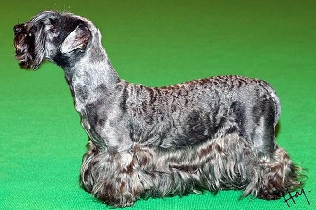 Mamy trzy niskonożne teriery, które jednak, jak pokazuje szkic, dość istotnie różnią się sposobem przygotowania szaty do wystawy. Patrząc na psa z tyłu widzimy trzy zupełnie inne sylwetki – jak widać szata czeskiego teriera powinna opadać i w żadnym przypadku nie może psa poszerzać.