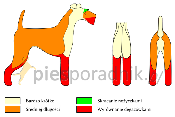 Podane terminy mogą się oczywiście różnić i trzeba je wypraktykować dla tego, a nie innego psa. Jeśli ustalimy indywidualny grafik trymowania, dokładnie wszystko zapiszemy a potem będziemy go stosować, jest duża szansa, że długość sierści będzie wszędzie w sam raz. Pozostanie już tylko bardzo niewielki retusz polegający przede wszystkim na wyrównaniu przejść między sierścią różnej długości i pies będzie się wspaniale prezentował.
