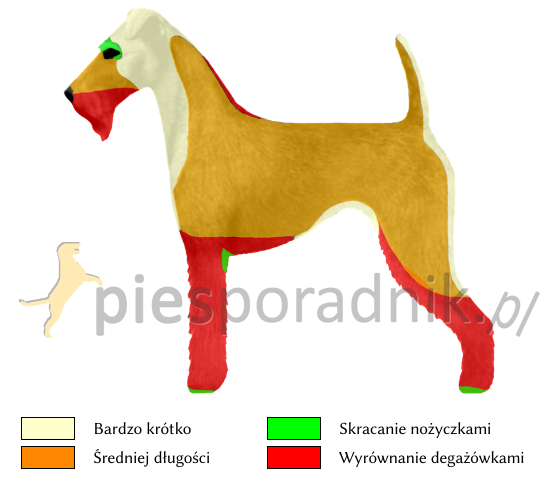 Włos nie powinien maskować obrysu tułowia, a szczególnie tylnych kończyn. Niewielka broda jest jedynym miejscem, gdzie może być dłuższy, ale również tutaj musi być szorstki. Spotykana u innych terierów tzw. kozia broda nie jest akceptowana, ponieważ jest zbyt miękka, a nie jak wymaga tego wzorzec – szorstka i drutowata.