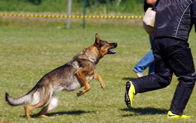 Pierwsze walki pies oczywiście musi wygrać. Nie zawsze jest to takie proste, bo wiele psów nie chce trzymać rękawa, wtedy właściciel musi go odpowiednio zachęcać, jednocześnie trzymając go na krótkiej smyczy, której opór stanowi dodatkowe wyzwanie. Są również psy, które z takim zapamiętaniem przystępują do ataku, że trzymają się rękawa i za żadne skarby nie chcą go puścić. Trzeba bardzo dobrze wyczuć granicę, kiedy pies zaczyna być nadmiernie agresywny i konsekwentnie go uczyć, że jego zadaniem jest zatrzymanie a nie zagryzienie napastnika. Przewodnik wydaje komendę „puść!” i pies powinien ją natychmiast wykonać. Ten kto psa szkolił bardzo dobrze wie, że często odwołanie psa jest znacznie trudniejsze niż pobudzenie go do obrony.