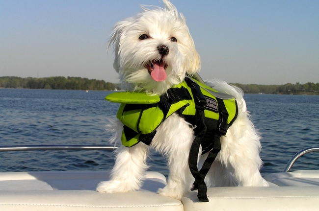 Sporo osób zabiera psa na wakacje nad wodę, często nawet na łódkę. Pamiętajmy, że zawsze może się zdarzyć, że pies nagle wpadnie do wody a na pokładzie nie ma nikogo, kto potrafi mu pomóc. Wyciąganie psa z wody wcale nie jest proste, zwłaszcza, jeśli jest duży, w dodatku spanikowany i rozpaczliwie sie broni. Kupmy mu specjalny kapok lub zróbmy go we własnym zakresie z kilku kawałków styropianu obszytego nieprzemakalną tkaniną. Taka prosta rzecz, a uratowała już niejedno życie. Pamiętajmy również o tym, żeby rozgrzanego w czasie upału psa nie wrzucać nagle do wody, bo taki szok termiczny, może sie skończyć zawałem serca. Więcej na ten temat w zakładce Pies bezpieczny w wodzie.