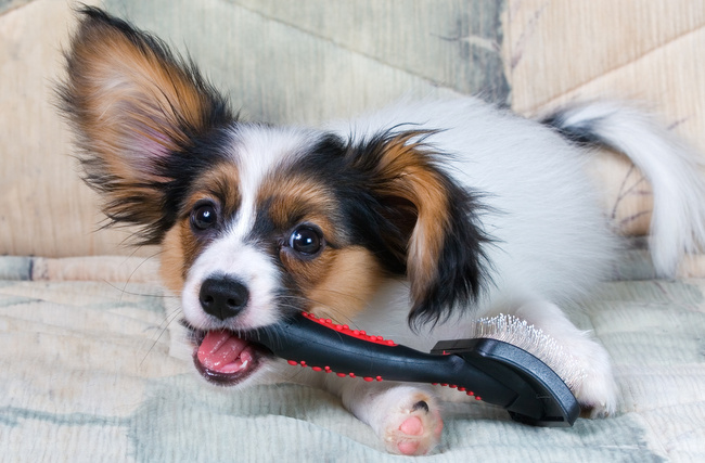 Uzębienie w tym wieku nie wymaga specjalnych zabiegów, warto jednak palcem owiniętym kawałkiem tkaniny, a potem z odrobiną psiej pasty do zębów, próbować czyścić psu zęby. Później na palec nałożymy szczoteczkę, lub zamienimy ją na prawdziwą szczotkę i pies przyzwyczajony do przesuwania czymś po jego zębach nie będzie protestował. W okresie wymiany zębów trzeba sprawdzać, czy nowe zęby prawidłowo rosną i czy zęby mleczne już wypadły, zdarza się, że nie ma zamiaru wypaść i wtedy trzeba go usunąć.