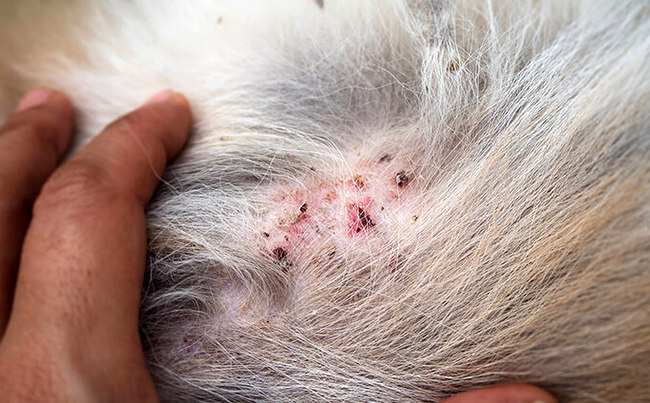 Nie wolno z tym zwlekać, bo do bólu i świądu wywołanego przez enzymy proteolityczne zawarte w ślinie larw, bardzo szybko, bo już po paru godzinach od ukąszenia, dołączą się następne objawy: silne podrażnienie, obrzęk, pieczenie, zaczerwienienie skóry, a w ślad za nimi rumień, strupy i krosty. Kiedy najedzone larwy odpadną od swego żywiciela na jego skórze pozostaną liczne ogniska zapalne, które, gdyby nie świąd, z którym pies nie potrafi sobie poradzić, utrzymałyby się jeszcze około tygodnia. Ponieważ nieustannie je wylizuje, rozdrapuje i wygryza, powstają rany otwarte na różne infekcje bakteryjne i grzybicze, wymagające długotrwałego leczenia.