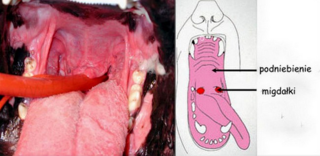 Przerośnięte podniebienie miękkie zamykające drogi oddechowe w krytycznej sytuacji widoczny na zdjęciu zabieg ratuje psu życie