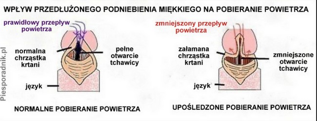 Do przerostu podniebienia dochodzi najczęściej w następstwie problemów oddechowych spowodowanych zwężeniem skrzydełek nosowych. W tej sytuacji następuje przyspieszony przepływ powietrza przez nos i krtań, który przy każdym wdechu powoduje wciągnięcie podniebienia miękkiego do światła głośni, co ogranicza a chwilami nawet blokuje przepływ wdychanego powietrza. W bardziej zaawansowanym stadium choroby ataki duszności bywają tak silne, że pies nie mogąc złapać powietrza wpada w panikę, co powoduje, że zaczyna się dusić. Jedynym wyjściem jest wówczas założenie sondy dotchawiczej (na zdjęciu czerwona rurka), która umożliwi mu oddychanie. Mało który właściciel psa jest na to przygotowany.