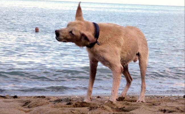 • Jeśli pies zażywa kąpieli w jeziorze, nie ma szans, żeby woda nie dostała się do jego uszu. Nie pozostaje nam nic innego jak tylko po wyjściu z wody pozwolić mu porządnie wytrzepać uszy, bo w ten sposób najprędzej się jej pozbędzie. Przechylenie głowy psa na bok uchem w dół i jednoczesne pomasowanie go u nasady, najczęściej powoduje wypłynięcie resztek wody. Mimo to trzeba je zawsze dokładnie osuszyć szmatką, zwłaszcza u psa, który w przeszłości miał już problemy z uszami.